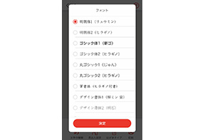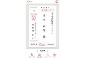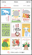 年賀状のテンプレートは「定番」「おしゃれ」「カジュアル」などのテーマで探すことができ、470点以上のデザインを収録。アレンジ可能なスタンプは、100点以上を収録しています。また、書体はiOS 11種類、Android 9種類から選択でき、薄墨設定も可能です。さらに、宛名面は縦書きか横書きを選択できるようになっています。