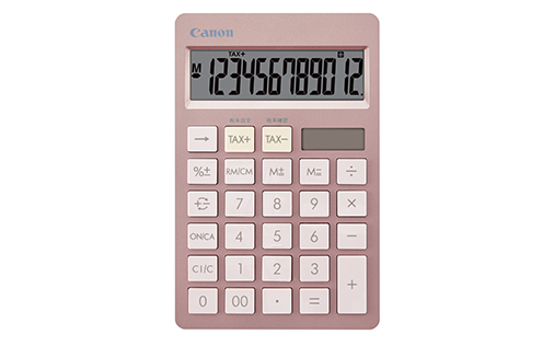 卓上サイズの12桁表示モデルで、ピンク、ブルー、ホワイトの3色のカラーバリエーションをラインアップしており、いずれも表と裏のカラーが異なるツートーンカラーのおしゃれなデザインになっています。
