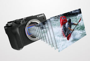 キヤノンのレンズ交換式カメラで初搭載となる最高約14コマ/秒の「高速連続撮影+」と最高約30コマ/秒の「RAWバーストモード※2」により、高速連写を実現しています。さらに、各画素が撮像と位相差AFの両方の機能を兼ねる「デュアルピクセルCMOS AF」による高速・高精度AFとの連携により、動く被写体でも快適に撮影することができます。また、被写体の瞳を検知してフォーカスを合わせる「瞳AF※3」が、サーボAF ⁄ 動画サーボAF時においても設定可能です