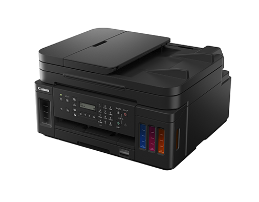 "G7030"は、ブラックインクボトル(別売り)1本分の容量で約8,300ページ※1、カラーインクボトル(シアン ⁄ マゼンタ ⁄ イエロー・別売り)の場合は約7,700ページ※1の大量印刷が可能です。インクコストは2機種ともA4モノクロ文書1ページ当たり約0.4円※2、"G7030"はA4カラー文書1ページ当たり約0.9円※2と低ランニングコストを実現しています。また、最大250枚積載可能な給紙カセットと、背面給紙を合わせて最大350枚の大量給紙による高い生産性を実現しています。さらに、2機種とも最大35枚積載可能なADFの搭載により、スキャンやコピーの際にカバーを開けることなく原稿の連続読み取りが可能になり、業務効率の向上に貢献します。