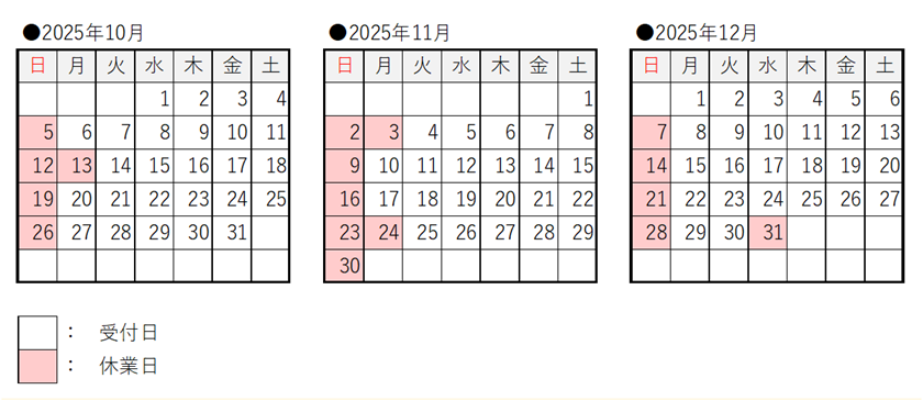 休業日の翌日は大変電話が混み合います。また12月後半は大変つながりにくくなることが予想されます。お電話がつながりにくい場合は、下記「関連サポートメニュー」もご活用ください。