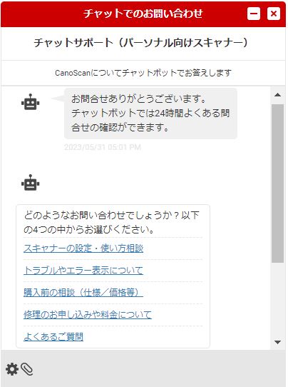 パーソナル向けスキャナー CanoScanチャットでのお問い合わせ