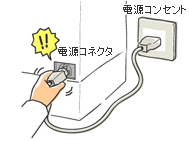 (例)電源コードが電源コネクタ付近で曲げられ、常時、壁などに押し当てられた状態で設置されている。