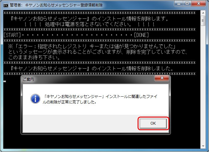キヤノンお知らせメッセンジャーの削除ツール使用方法をご案内致します。