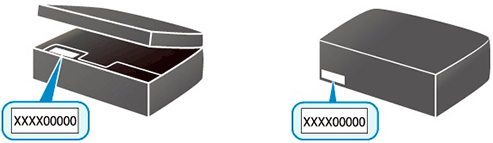 プリンターのシリアル番号は9文字(前半4文字がアルファベット、後半5文字が数字)で、本体のシールに記載されています。シール貼り付け位置は商品によって異なりますが、下図のようにプリンターの内部もしくは背面にあります。