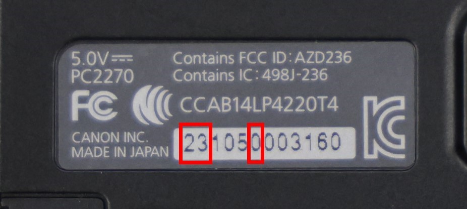 カメラのシリアル番号(モニターの裏に表示)の左から2桁の数字が「21」~「62」、かつ6桁目の数字が「0」~「4」の製品で、上記現象が発生した製品が対象となります。