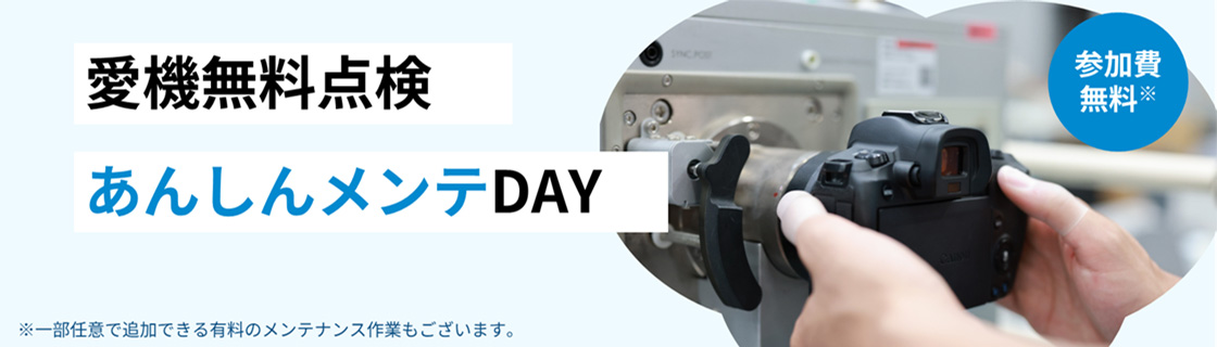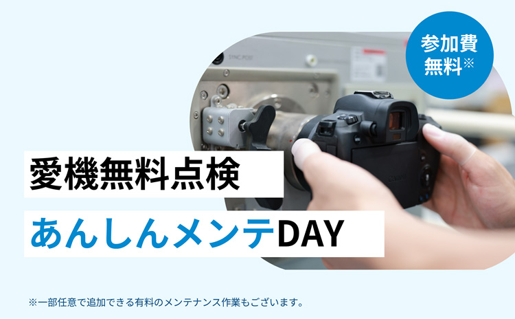 キヤノンでは、お客さまにより快適に製品をご使用いただけるよう、レンズ交換式カメラを対象とした無料点検イベント「愛機無料点検 あんしんメンテDAY」を実施いたします。専門スタッフがカメラの基本動作やセンサーの状態を確認いたします。