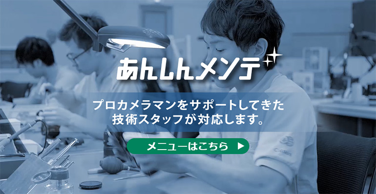 様々な状態のカメラやレンズを、幅広いノウハウと高い技術を使って点検・クリーニングを行なっています。