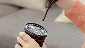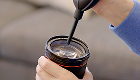 ブロアーを使ってレンズ表面のホコリを落とします。