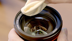 レンズ表面に指紋や汚れが付着していたら、クロスで優しく拭きます。