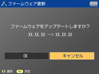 液晶オートオフ設定により、数分後に、ファームウエアアップデートの表示画面が液晶モニタ上から表示されなくなりますが、アップデート中です。