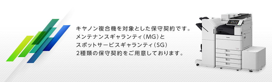 保守サービス料金(MG料金)は、お客さまが一定期間内にコピーまたはプリントされた使用枚数に応じて計算します。MG料金の中には、サービス技術料、感光体(ドラムユニット)貸与料、トナー、消耗部品代が含まれます。